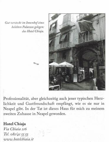 Overnachten Chiaia (F 5) Via Chiaia, 216 tel.081 41 55 55 Fax 081 42 23 44 vww.hotelchiaia.it R2,... [Read More]